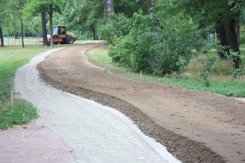 Лучше всего использовать пневмоколесный каток (резиновые шины) для начального уплотнения во избежание прилипания грунта к вальцу, а завершить с помощью вибрационного катка с гладкими стальными вальцами (статическое уплотнение/укатка).