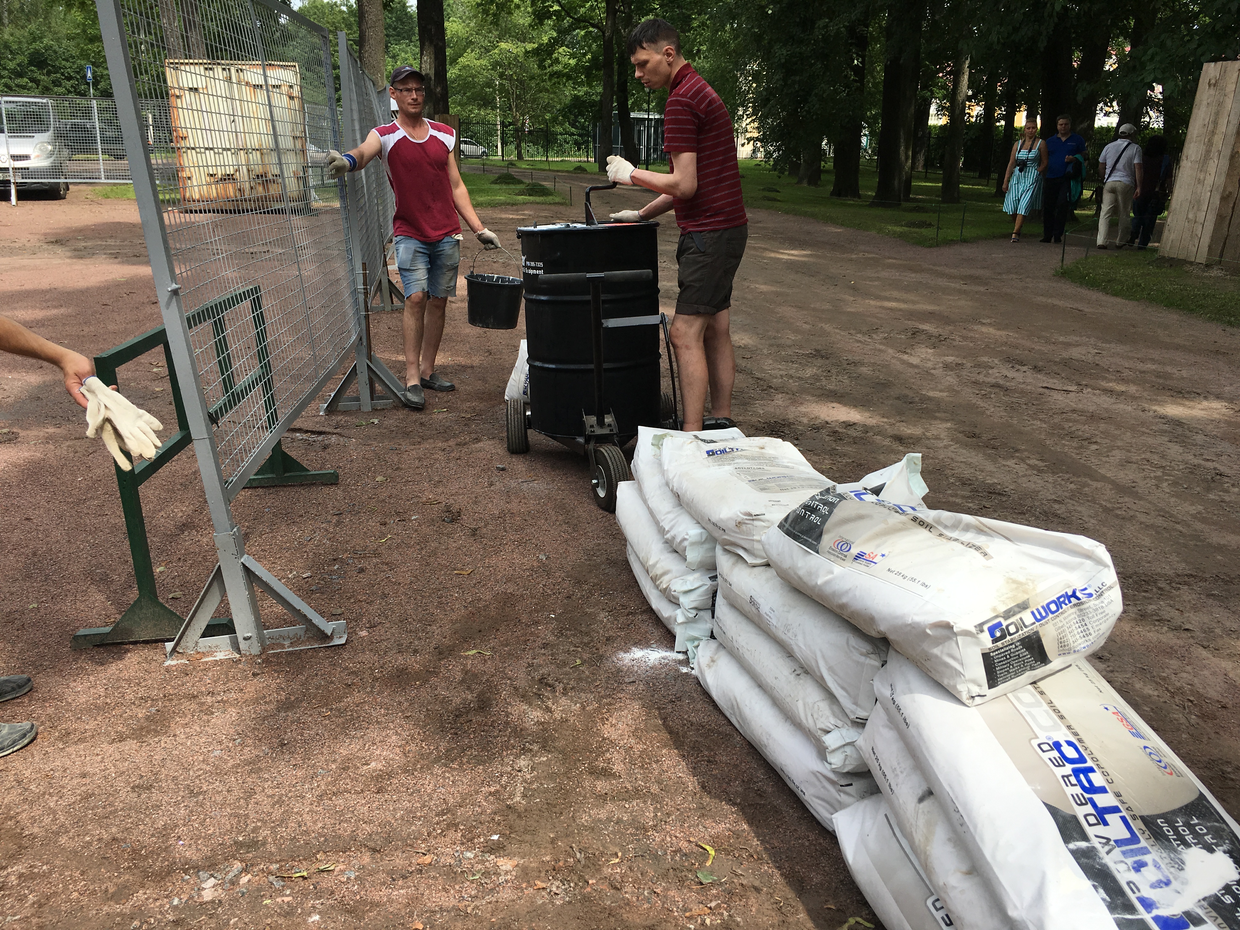 Внесение: После планировки участка и определения необходимого количества цементно полимерной смеси, с использованием дозатора равномерно распределить ПЦС по участку.