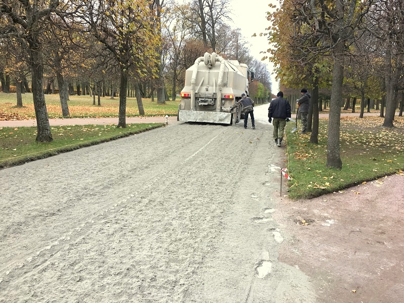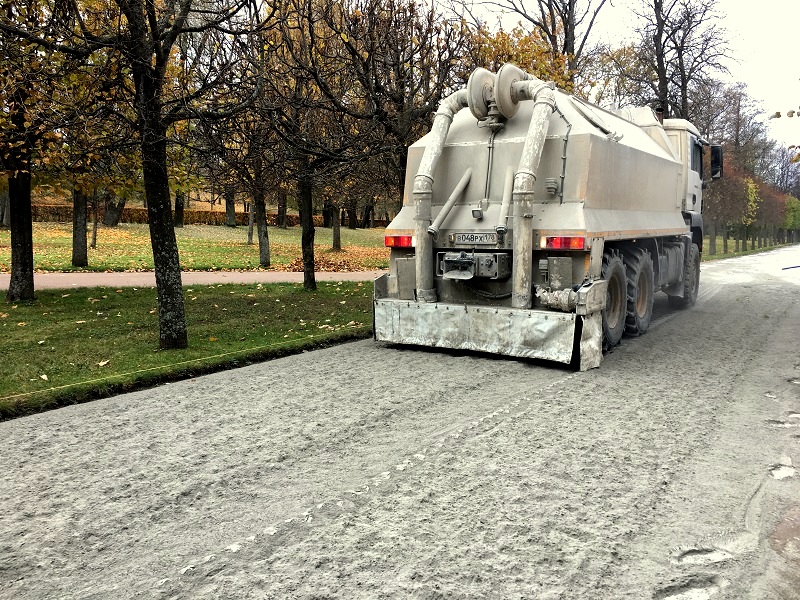 SSPW следует равномерно наносить на предполагаемую стабилизированную поверхность с использованием автомобиля – дозатора или ручным способом (в случае небольшой площади стабилизации).