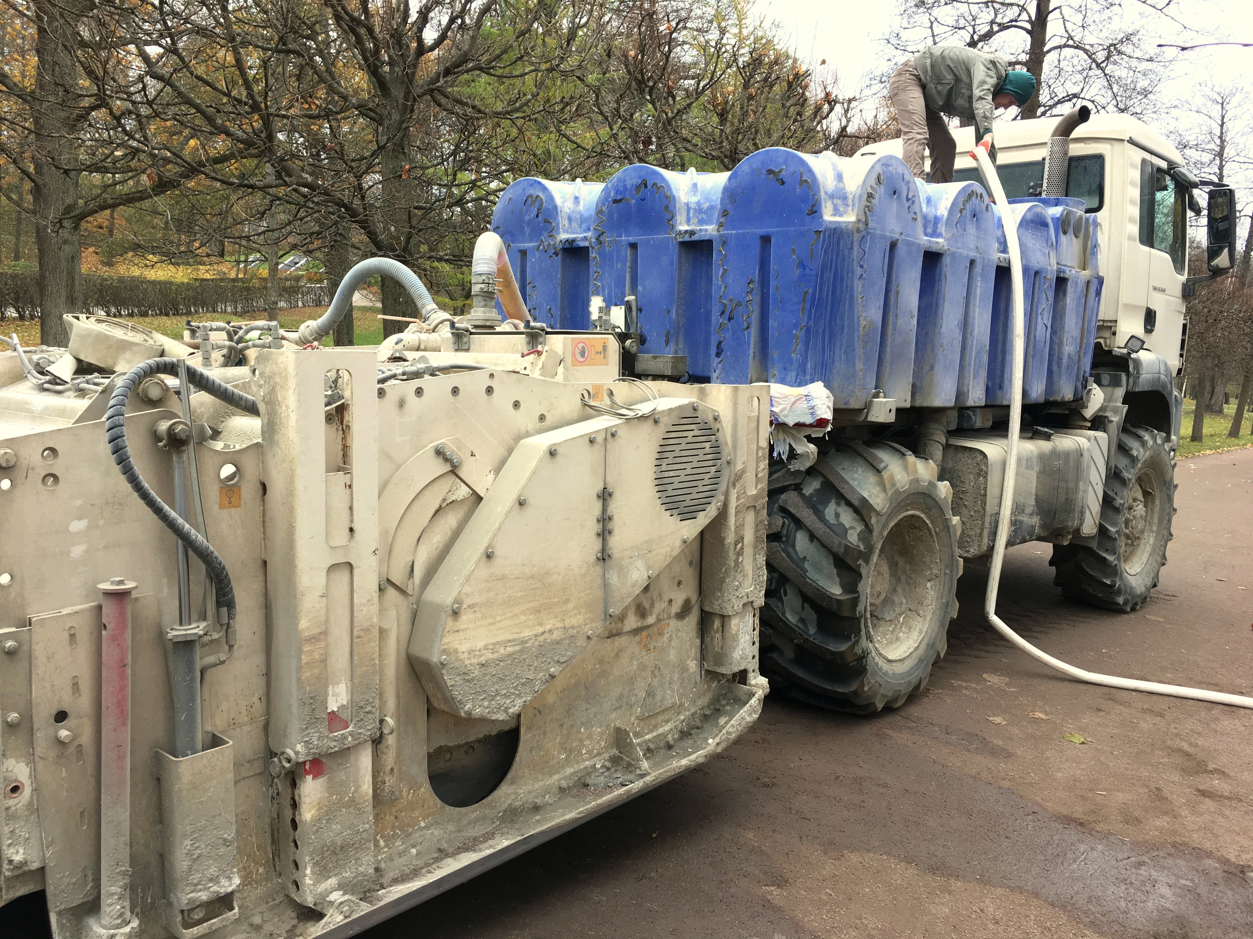 Перемешать грунт ресайклером на рекомендуемую глубину 15 см до равномерного распределения SSPW в грунте.