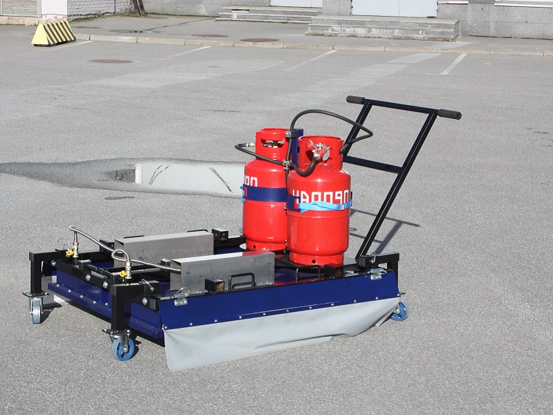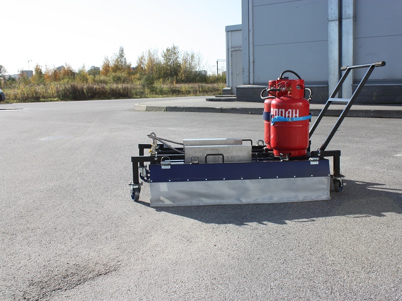 Мощная установка инфракрасного нагрева поверхностей свыше 300 000 BTU - при потреблении от 3.5 до 4 кг топлива в час. Нагрев асфальтобетона происходит за 5 минут. Работает от двух бытовых газовых баллонов 27 и 50 литров. Розжиг осуществляется в ручном режиме от горелки.