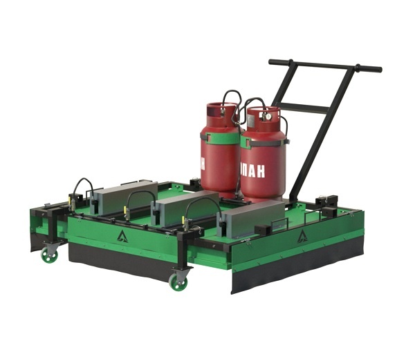 Мощная установка инфракрасного нагрева поверхностей свыше 75 кВт - при потреблении от 5.0 до 7 кг топлива в час. Нагрев асфальтобетона происходит за 5 минут. Работает от двух бытовых газовых баллонов 27 и 50 литров. Розжиг осуществляется в ручном режиме от горелки.