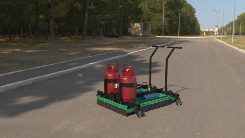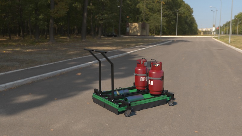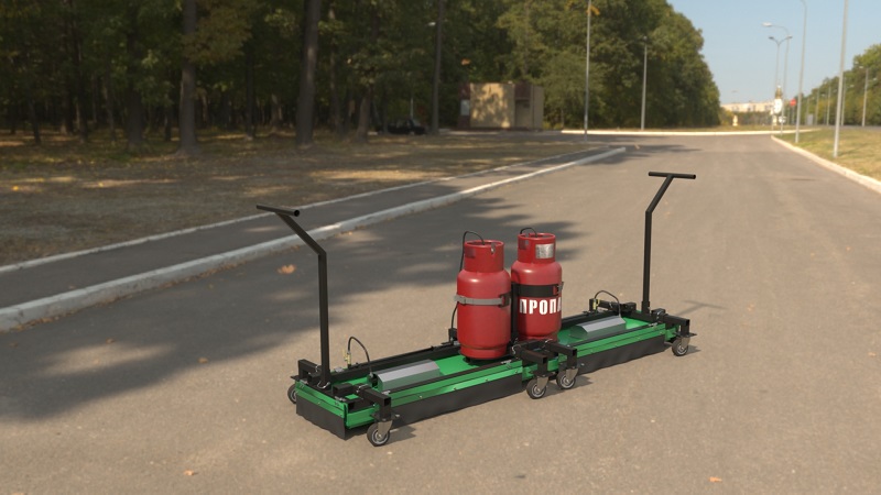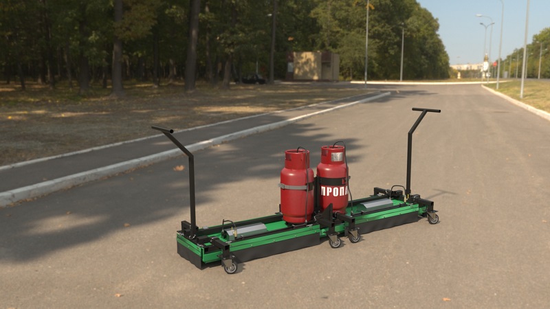 Мощная установка инфракрасного нагрева поверхностей свыше 300 000 BTU - при потреблении от 3.5 до 4 кг топлива в час. Нагрев асфальтобетона происходит за 5 минут. Работает от двух бытовых газовых баллонов 27 и 50 литров. Розжиг осуществляется в ручном режиме от горелки.