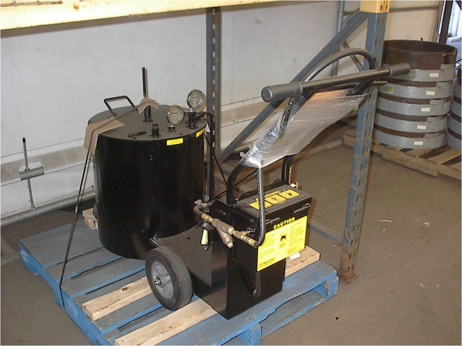 Плавильный котел KERA10 предназначен для нагрева и приготовления герметика для заливки трещин Oil Jacketed Rubberized Asphalt Kettle for crack sealing/waterproofing Gravity Pour, Propane Fired Manual Agitation, Walk Behind