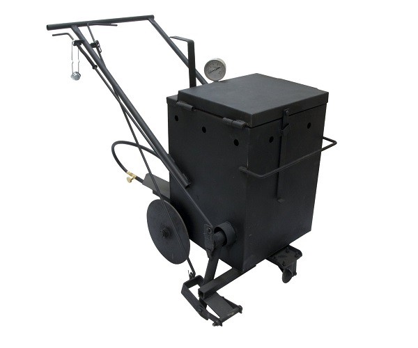 Установка предназначена для разогрева и нанесения горячего герметика(мастики) на поверхность асфальта и бетона. Данная установка надежна в эксплуатации и оснащена рычагом для смешивания материала. Емкость котла составляет 60 литров. При нанесении и работе с оборудованием необходимо соблюдение мер пожаробезопасности и техники безопасности.