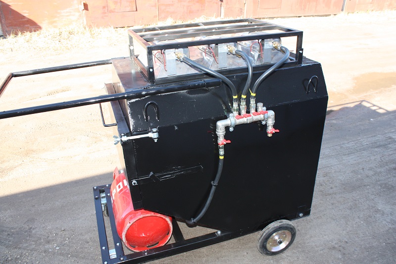 Установка является незаменимой для подрядчиков и прекрасно используется в паре с инфракрасными обогревателями тротуарных и дорожных покрытий. Его простота в управлении и эксплуатации и обеспечивает эффективную работу по ямочному ремонту покрытий.