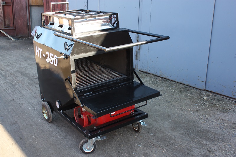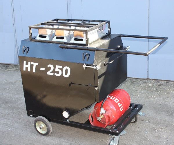 Передвижной бункер - термобокс на раме для нагрева и хранения асфальта HT-250. Установка обеспечивает быстрый нагрев асфальта инфракрасными газовыми горелками до заданной температуры при выполнении работ по ремонту асфальтобетонных покрытий. Автономность - 9 - 10 часов. Производительность переработки от 2 до 5 тонн за смену.