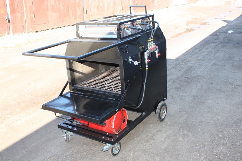 Установка обеспечивает нагрев асфальта инфракрасными газовыми горелками до заданной температуры при выполнении работ по ремонту асфальтобетонных покрытий. Нагрев асфальтовой массы осуществляется горелками, расположенными в верхней части термобокса. Загрузка асфальта производится в верхней левой или правой сторонах бункера. Нагрев асфальта происходит на решетке. Как только асфальт нагревается, то он опускается в низ через решетку. Автономность - 9 - 10 часов. Производительность переработки от 2 до 5 тонн за смену.