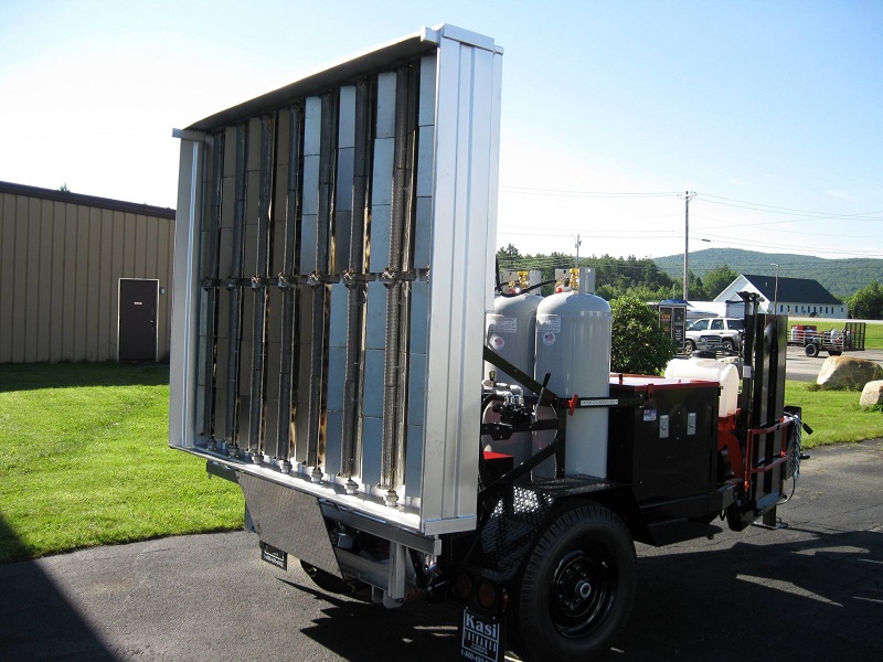 Kasi IR-480 Установленный на прицепе инфракрасный нагреватель с поверхностью в 4,46 м2, с 8 шт. горелок "UltraGlo". Система "Kasi IR-480" посредством инфракрасного облучения нагревает поверхность уже имеющегося асфальтобетонного покрытия дороги. За 3 минуты данная поверхность разуплотняется до степени, позволяющей произвести ремонт покрытия. Установка является не заменимой для подрядчиков и прекрасно используется в паре с термос-бункерами, рециклерами и переработчиками асфальта.