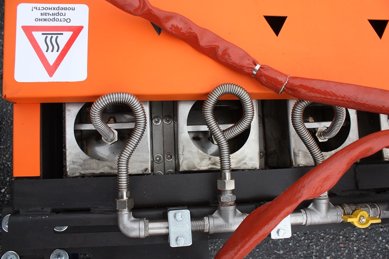 Мощная установка инфракрасного нагрева поверхностей свыше 425 000 BTU - при потреблении от 3.5 до 4 кг топлива в час. Нагрев асфальтобетона происходит за несколько минут (в два раза быстрее зарубежных аналогов)