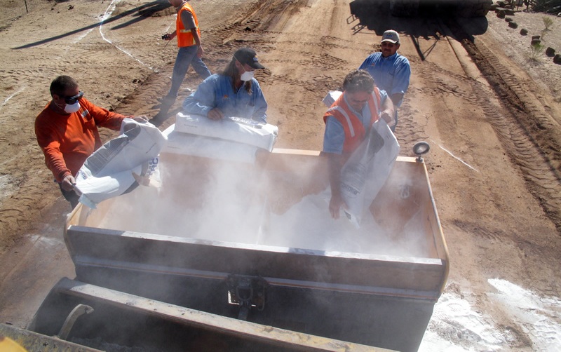 Использование материала Powdered Soiltac является наиболее экономически целесообразным. В отличии от полимерных эмульсий, Powdered Soiltac не боится отрицательных температур, поставляется в мешках по 25 кг, экономичен в доставке, не требуется тяжелая техника для его разгрузки. Более того его можно рассыпать по участку прямо из мешков, а затем сверху пролить водой.