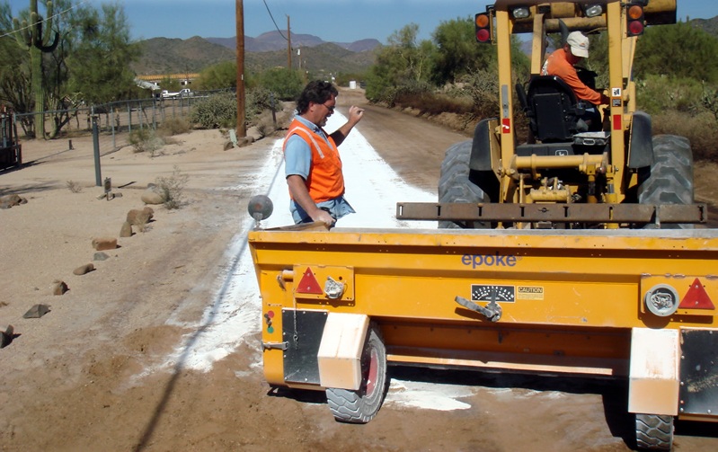Уже на протяжении 12 лет компания наша компания внедряет поставляет полимерные материалы для борьбы с пылью. Powdered Soiltac–порошок белого цвета, в составе которого сополимер из винилацетата, этиленовый и виниловый эфир с минеральными наполнителями и защитным коллоидом. Powdered Soiltac можно рассыпать сразу из мешка на обрабатываемый участок, а затем проливать водой. При растворении в воде становится прозрачным.