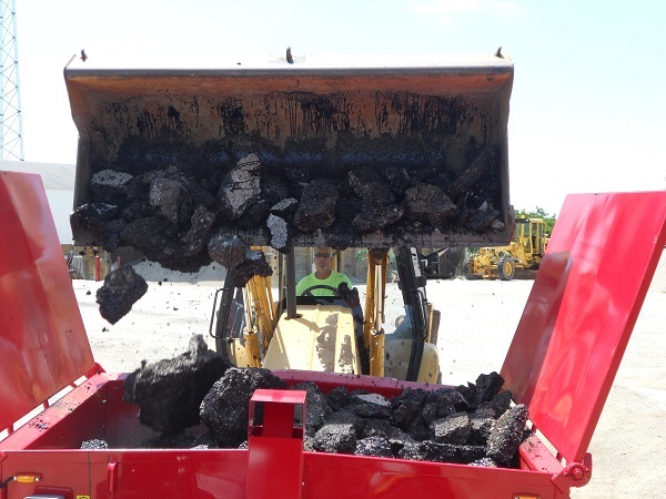 - Заполните бункер на 1/3 от его объема асфальтобетонным гранулятом ( асфальтовая крошка).
