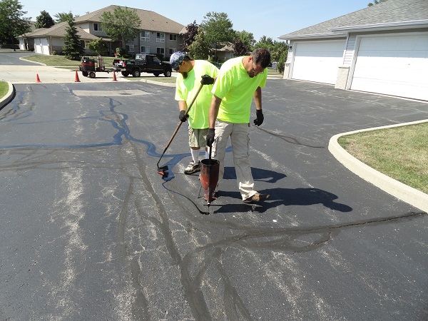 Если трещина в асфальте очень глубокая, то возможно произвести засыпку строительного песка 1/3 по глубине с последующей заливкой герметиком.