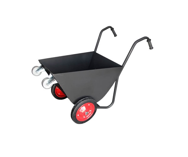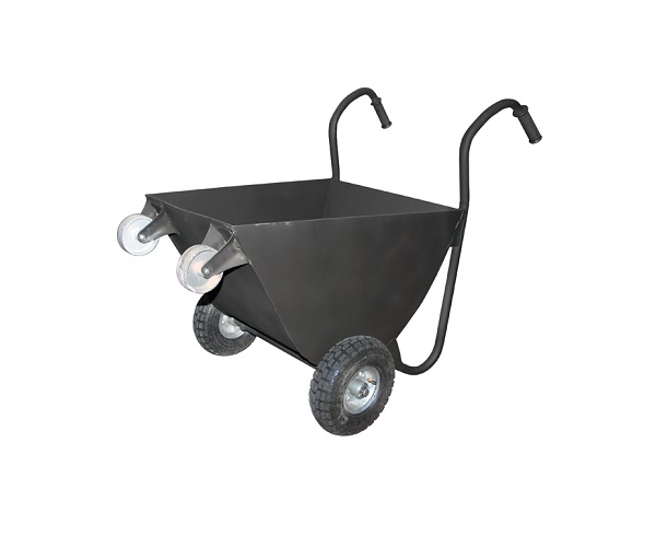 Тележка предназначена для перевозки литого асфальта от термос-бункера к месту ремонта дорожного покрытия. Помимо основных пневматических колес, тележка оборудована парой термостойких чугунных колес, которые установлены на передней стенке и позволяет удобно откатывать тележку назад после выгрузки асфальта. Выпускается в двух исполнении на пневматических колёсах (Ø 250 мм) или на колёсах с литой резиной (Ø 300 мм).